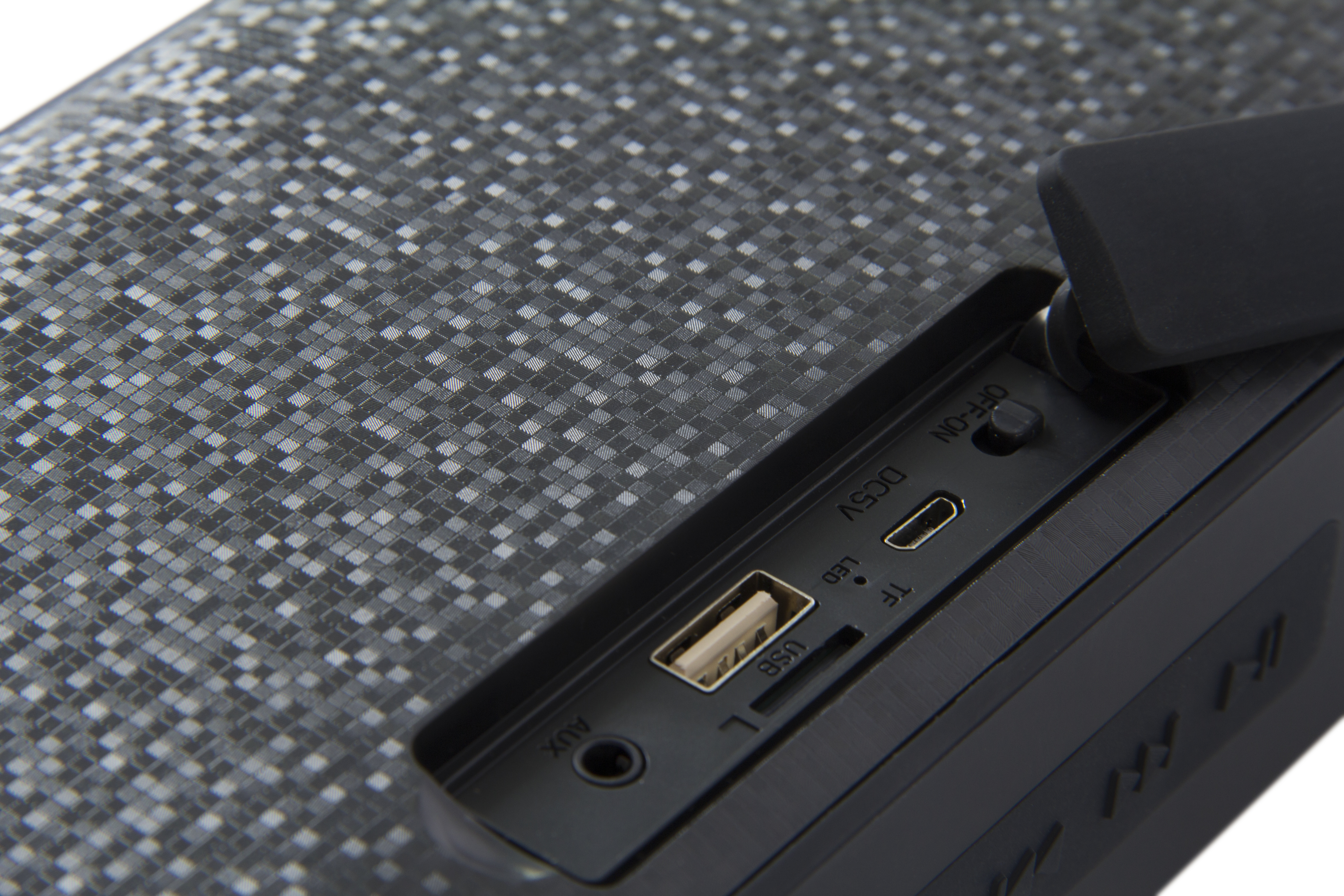 - Широкие возможности. Благодаря разъему USB колонка может воспроизводить аудио файлы с USB flash. Наличие слота для карт памяти позволяет подключать microSD до 32 Гб. Так же вы можете использовать кабель AUX 3.5mm и подключать любые совместимые устройства. Встроенный FM приемник не даст вам скучать на волнах любимой радиостанции